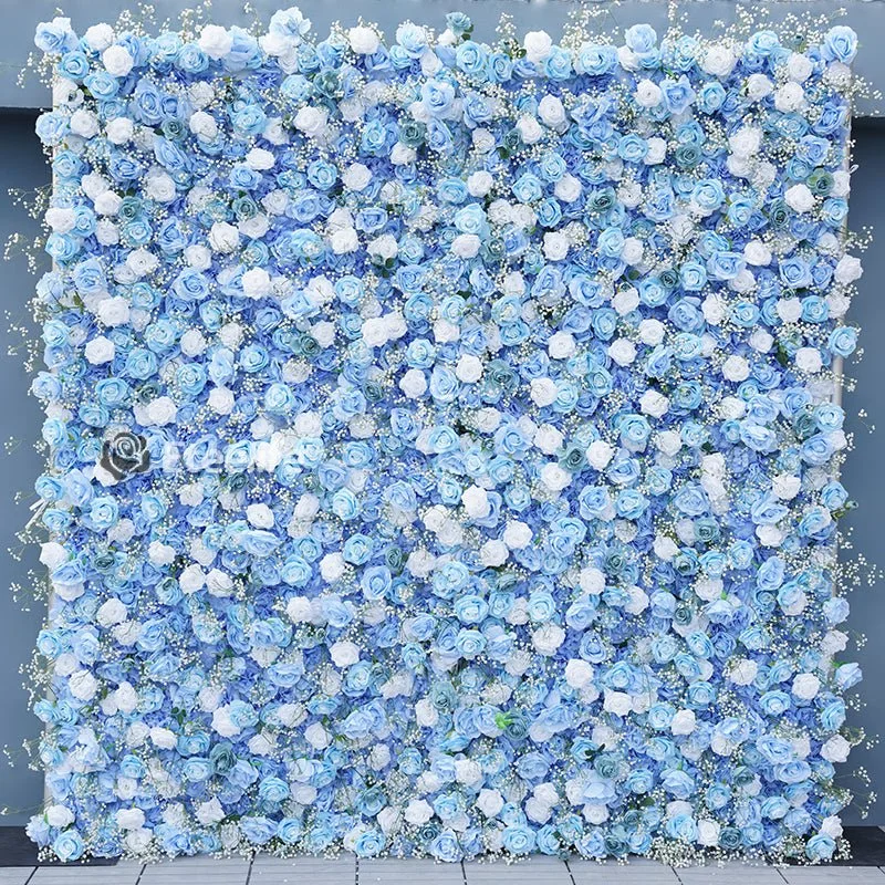 Angela Flower Blue Rose Babysbreath 5D Rolling Up Curtain Flower Wall Wedding Backdrop Decor Cloth Floral Wall Arrangment A7824