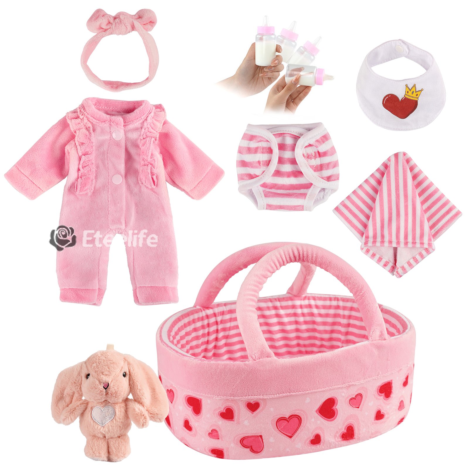 12" Pink Love for Reborn Baby Girl Accessories 8-Pieces Set