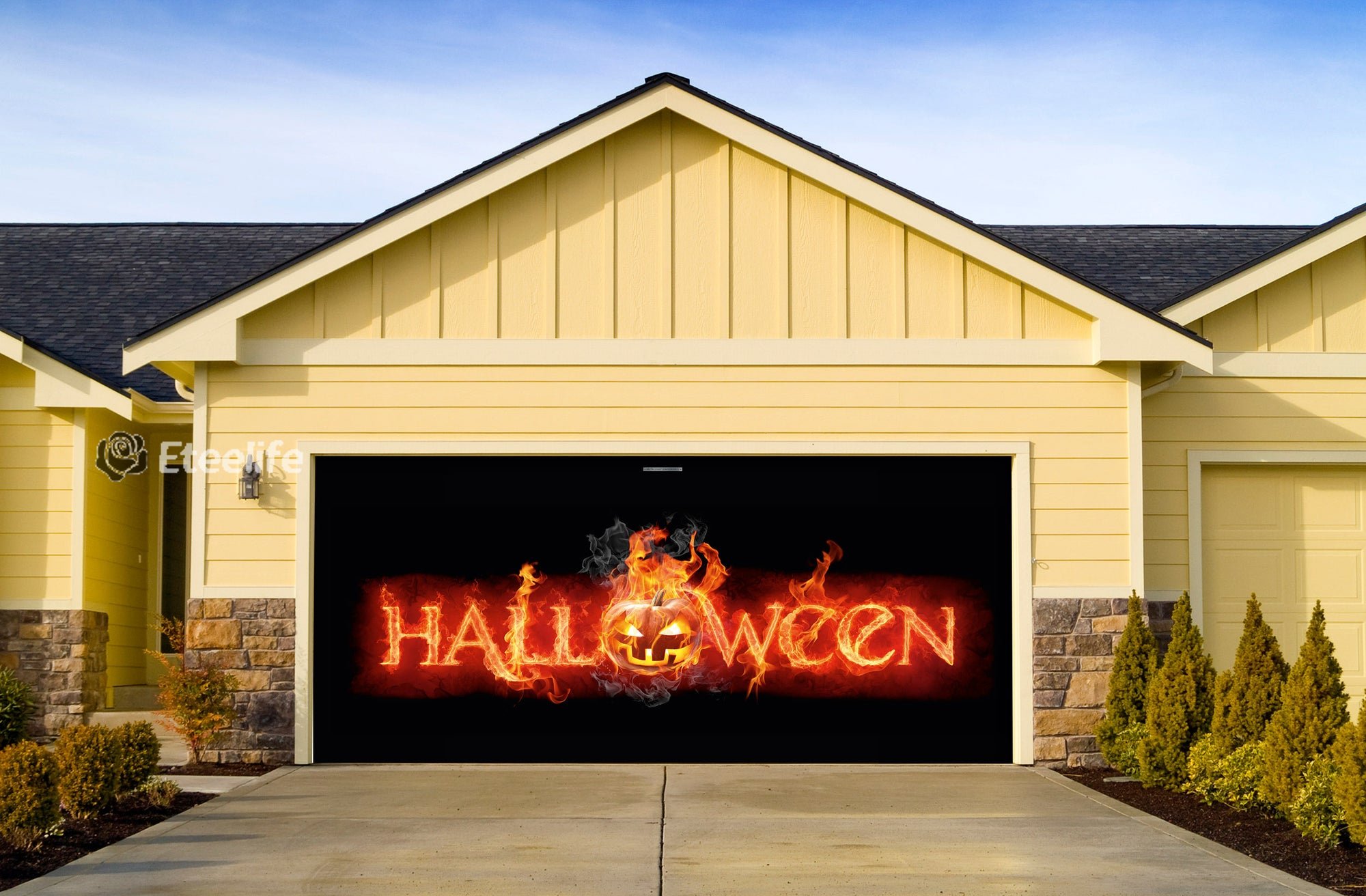 This year, we're making your Halloween a real treat! Get the gazers' hair standing with this Halloween themed garage door banner! A mural that can be hung on your garage door in just a matter of minutes, the components flex while the door goes up and down. Where there are no fun imaginative color designs, there is no horror!
