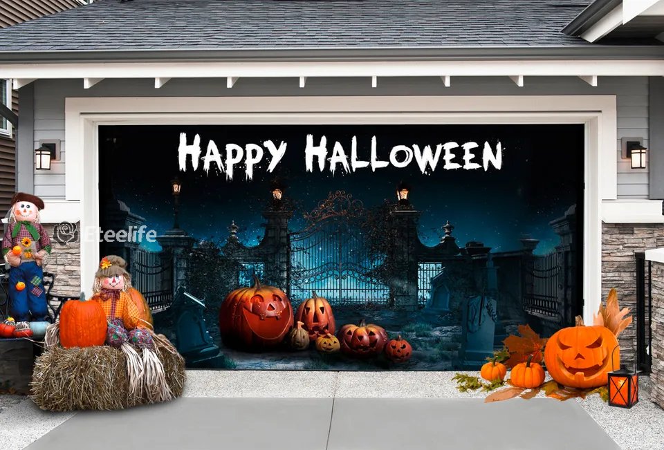 This year, we're making your Halloween a real treat! Get the gazers' hair standing with this Halloween themed garage door banner! A mural that can be hung on your garage door in just a matter of minutes, the components flex while the door goes up and down. Where there are no fun imaginative color designs, there is no horror!
