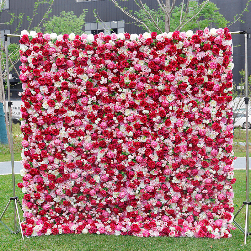 5D Red Artificial Rose Cloth Flower Wall Wedding White Backdrop Fabric Floral Wall Shopping Mall Window Display Party Stage Prop A4787