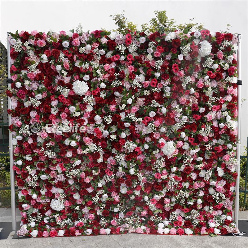 5D Red Pink Flower Wall Arrangement Artificail Hydrangea Baby Breath Roll Up Cloth Floral Wall Wedding Backdrop Decor Plant wall A7776