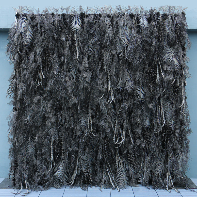 5D Black Feather Mist Grass Cloth Roll Up Flower Wall Curtain Hanging Fabric Plant Wall Event Party Wedding Backdrop Decor Props A117 A7491