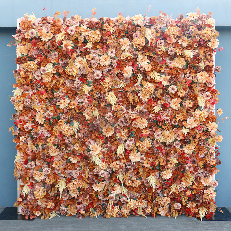 5D Autumn Series Retro Rolling Up Curtain Artificial Rose Plants Leaf Flower Wall Wedding Events Backdrop Decor A128 A5290