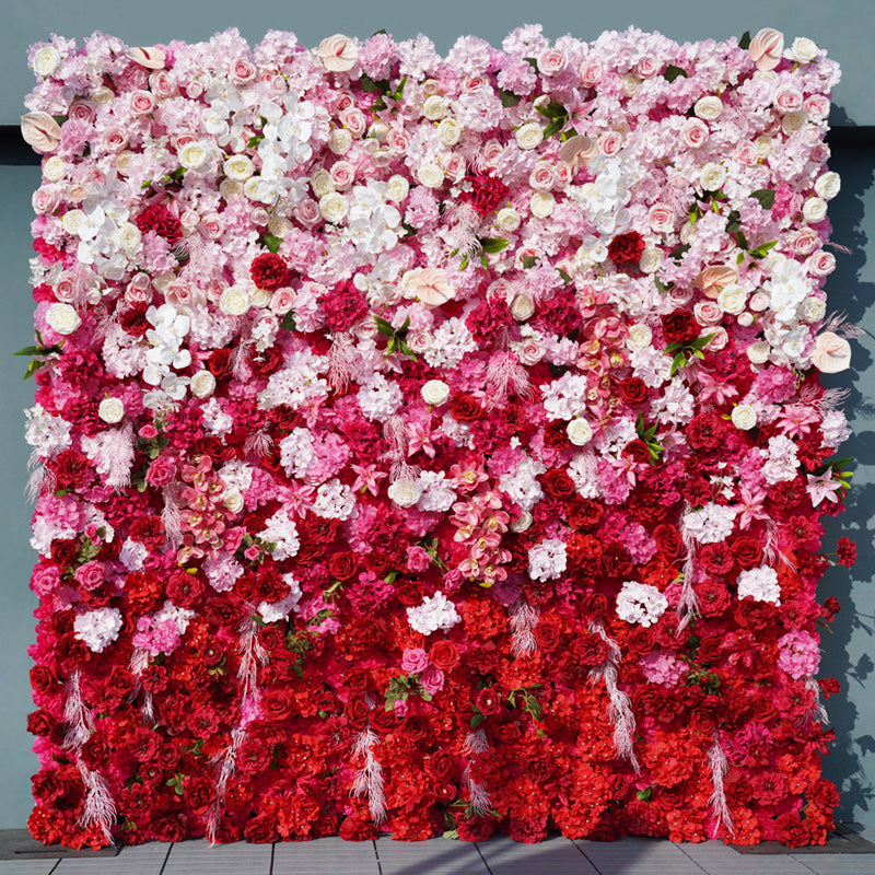 5D Gradient Red Pink Fabric Cloth Floral Wall Rose Palm Orchid Flower Arrangement Banquet Wedding Backdrop Decor A165 A7642