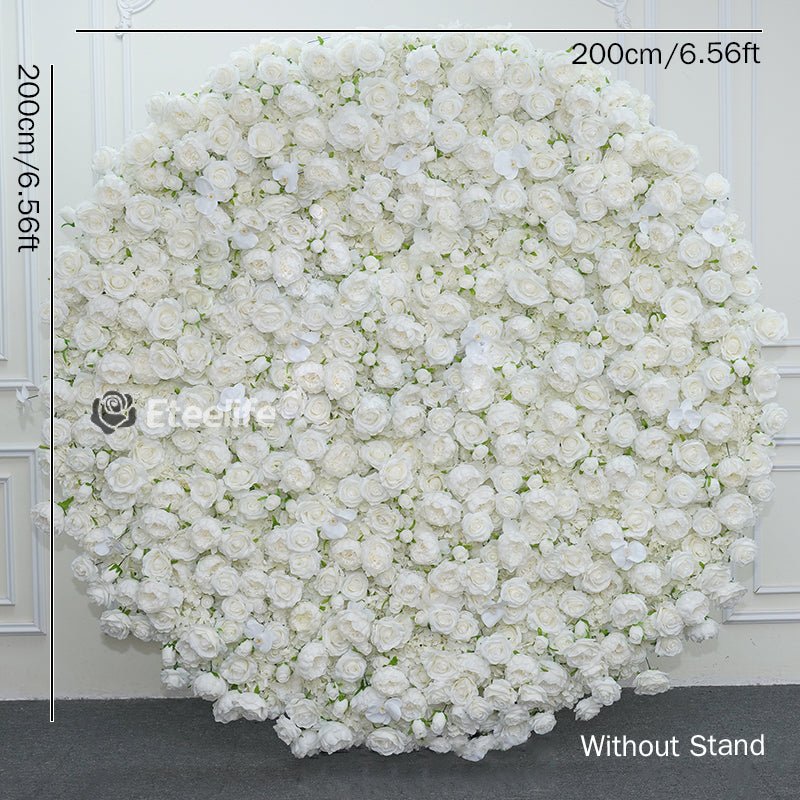 Angela Flower Luxury Round 5D White Rose Cloth Floral Wall Wedding Backdrop Arrangement A7712