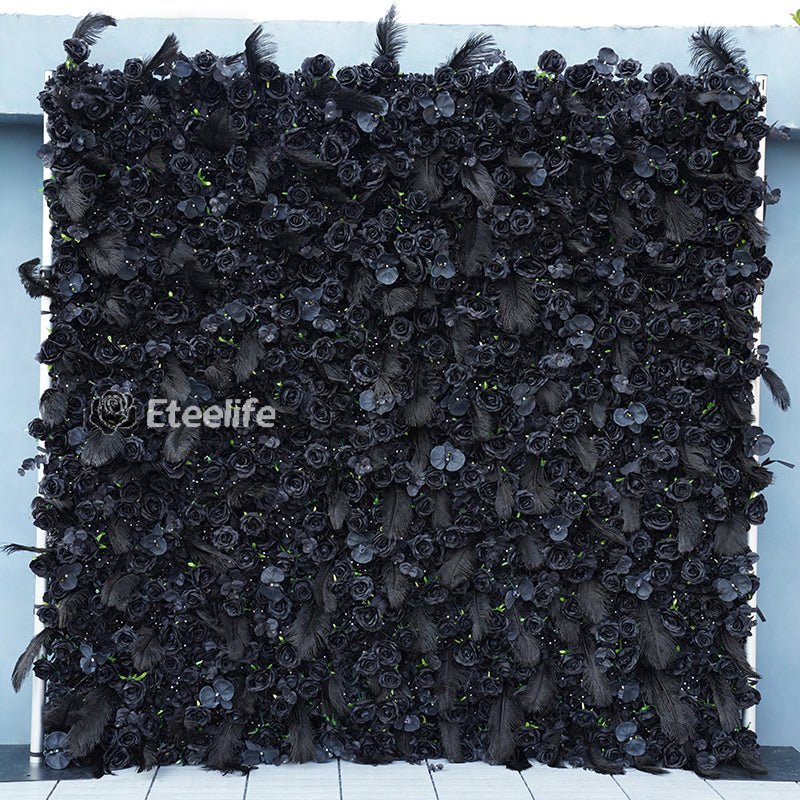 Angela Flower Black Rose Feather 5D Rool UP Cloth Flower Wall Wedding Backdrop Fabric Floral Wall A7748
