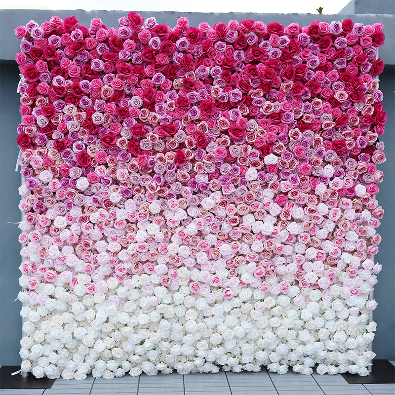 Angela Flower 5D Rose Pink White Gradient Rolling Up Fabric Curtain Cloth Flower Wall Wedding Backdrop A7703