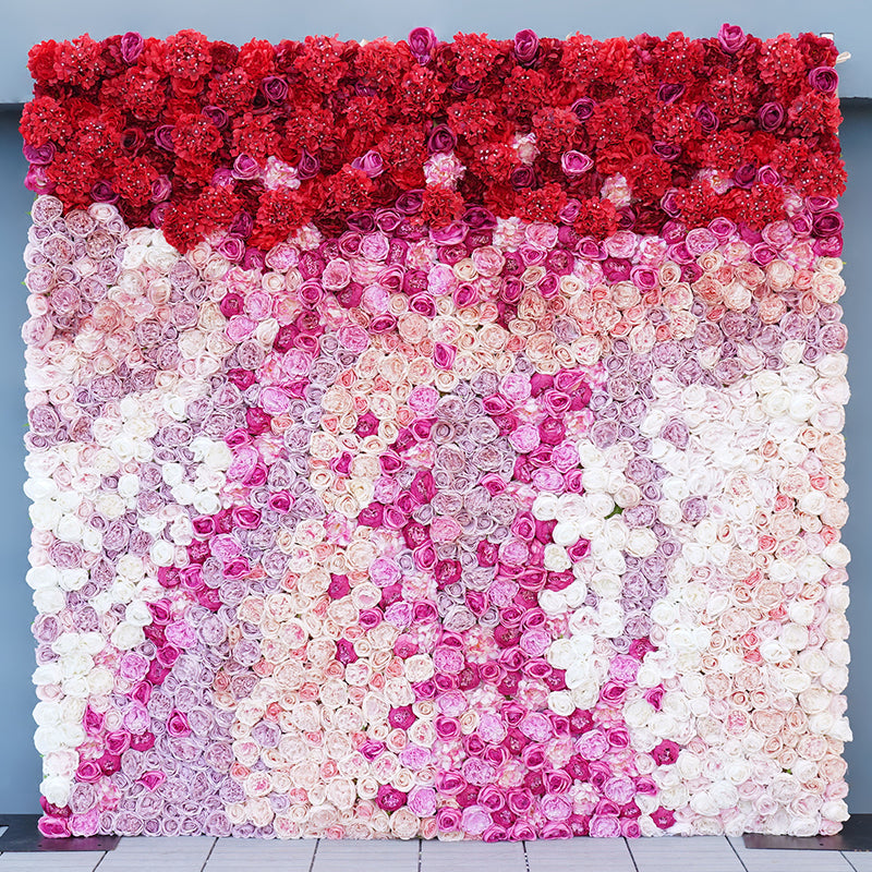 Angela Flower Red Hydrangea Purple Rose Peony Roll Up 5D Fabric Flower Wall Wedding Backdrop Deco Hanging Curtain Cloth Floral Wall A7778