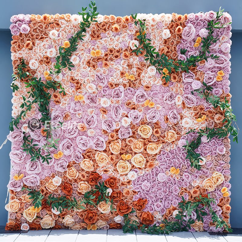 Angela Flower 5D Orange Purple Rose Dandelion Green Leaf Wedding Backdrop Decor Cloth Rolling Up Flower Wall Arrangement Window Display A7804
