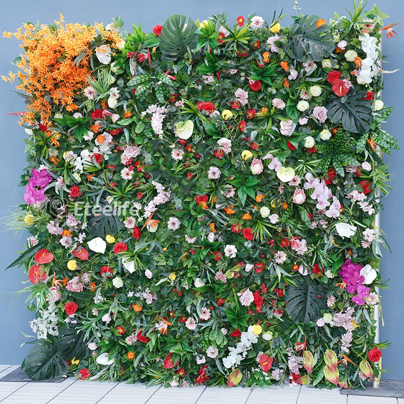 Angela Flower Mori Green Plants Leaf Colorful Flower Rolling Up Cloth Artificial Floral Wall Wedding Garden Decoration Outdoor Fabric Flower Wall Arrangement A7861