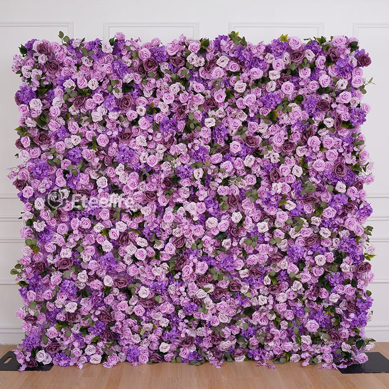 Angela Flower 5D Artificial Purple Pink Hydrangea Rose Peony Rolling Up Cloth Flower Wall Wedding Backdrop Outdoor Event Party Decor Props A7866