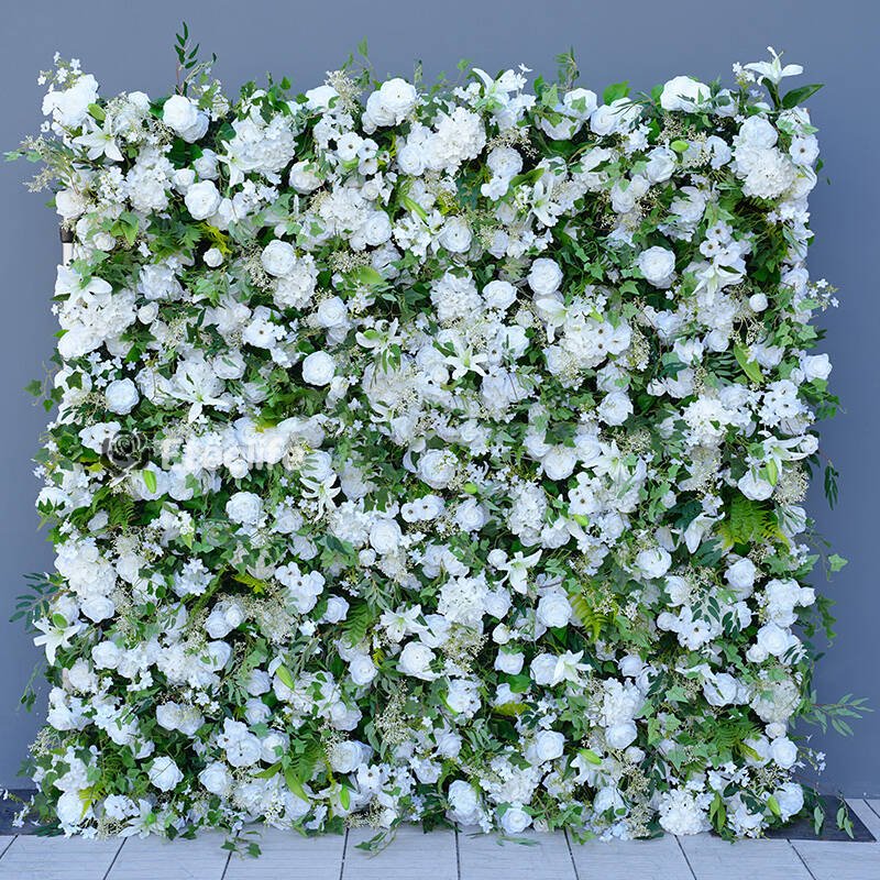 Angela Flower Mori White Rose Greenery Fabric Cloth Base 5D Roll Up Curtain Flower Wall A8699