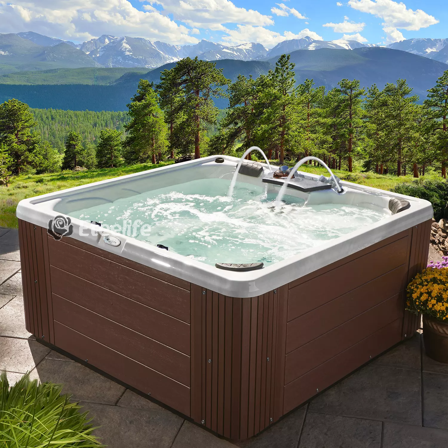 Enjoy the soothing hot water as you are surrounded by bubble jets, with 5 of your closest friends. It has an easy-to-use control panel that activates the 170 high-powered bubble jets that surround the interior of the spa, giving you a beautiful and relaxing massage.