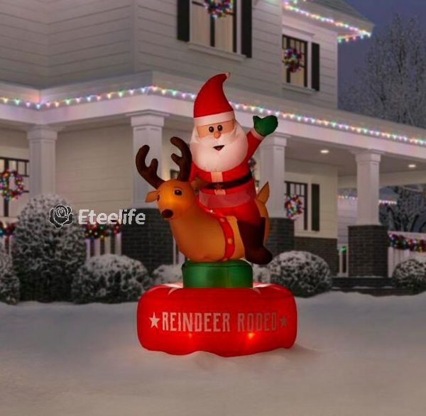 Christmas-animated inflatable santa and reindeer rodeo scene