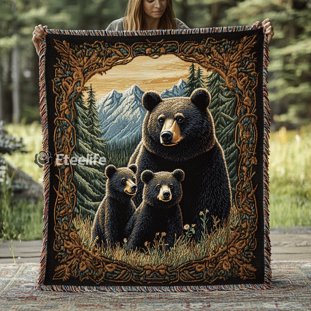 Black Bear Family Woven Sofa Blanket NCU0DV3912