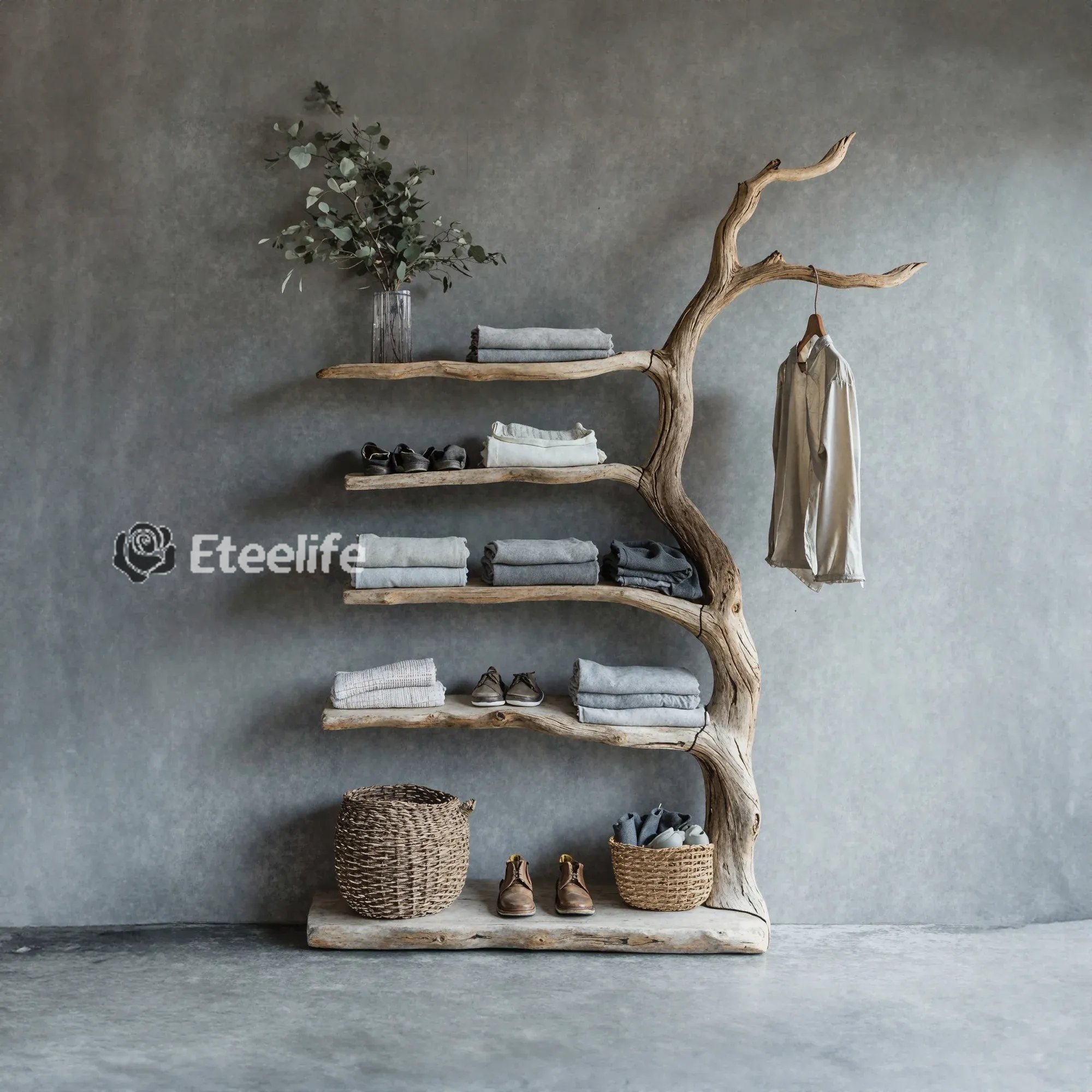Bring a fresh and creative touch to your living space with a one-of-a-kind tree-shaped clothes and shoe rack. This product mimics the natural form of a tree, featuring soft, curving branches that add a stunning, unique element to any room.