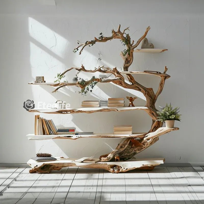 Spry Interior's standing tree branch shelf blends nature's charm with functional design. More than a bookshelf, it enhances spaces with versatile display options and sturdy craftsmanship, creating your personal masterpiece.