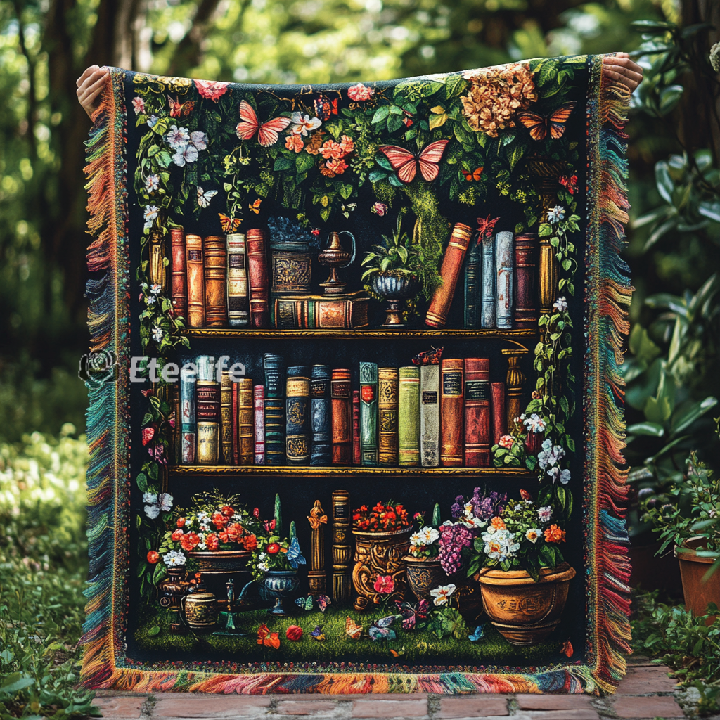 Floral Bookshelf Haven Woven Sofa Blanket NCU0DV3874