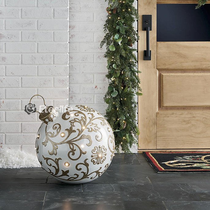 Greet guests at the door with this nearly 3-foot high light-up display. Our Stacked Ornament Door Greeter is crafted of fiberglass and is accented with 14 multicolored LED lights.