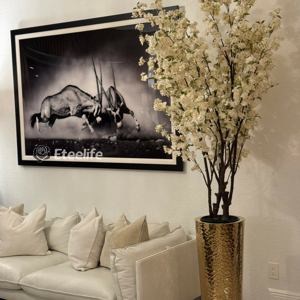 Cherry blossoms are a symbolic flower of the spring, a time of renewal, and the fleeting nature of life. Anchored in our signature Pure Gold collection high gloss stainless steel 34″ hammered cone, these stunning, life like state of the art cherry blossoms will transform any room in your home. Refresh and renew your space with these beauties.