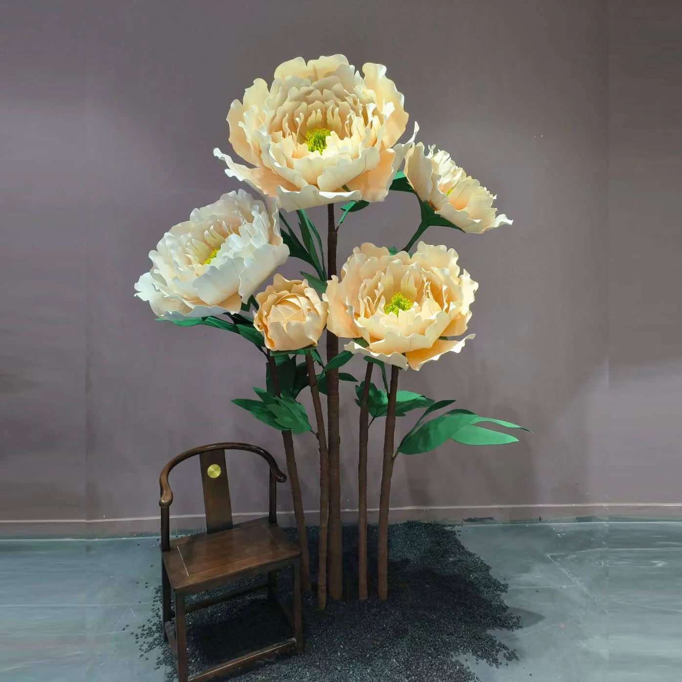 Our stunning giant flower decor has a beautiful shape and excellent workmanship. It can be disassembled at will for easy transportation. One person can complete the assembly. The height of the liftable base can be adjusted arbitrarily. The flower stem of the aluminum-plastic tube can be bent into the desired shape,outdoor waterproof.