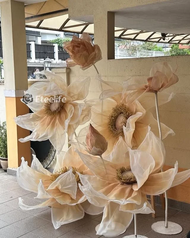 Our stunning giant flower decor has a beautiful shape and excellent workmanship. It can be disassembled at will for easy transportation. One person can complete the assembly. The height of the liftable base can be adjusted arbitrarily. The flower stem of the aluminum-plastic tube can be bent into the desired shape,outdoor waterproof.
