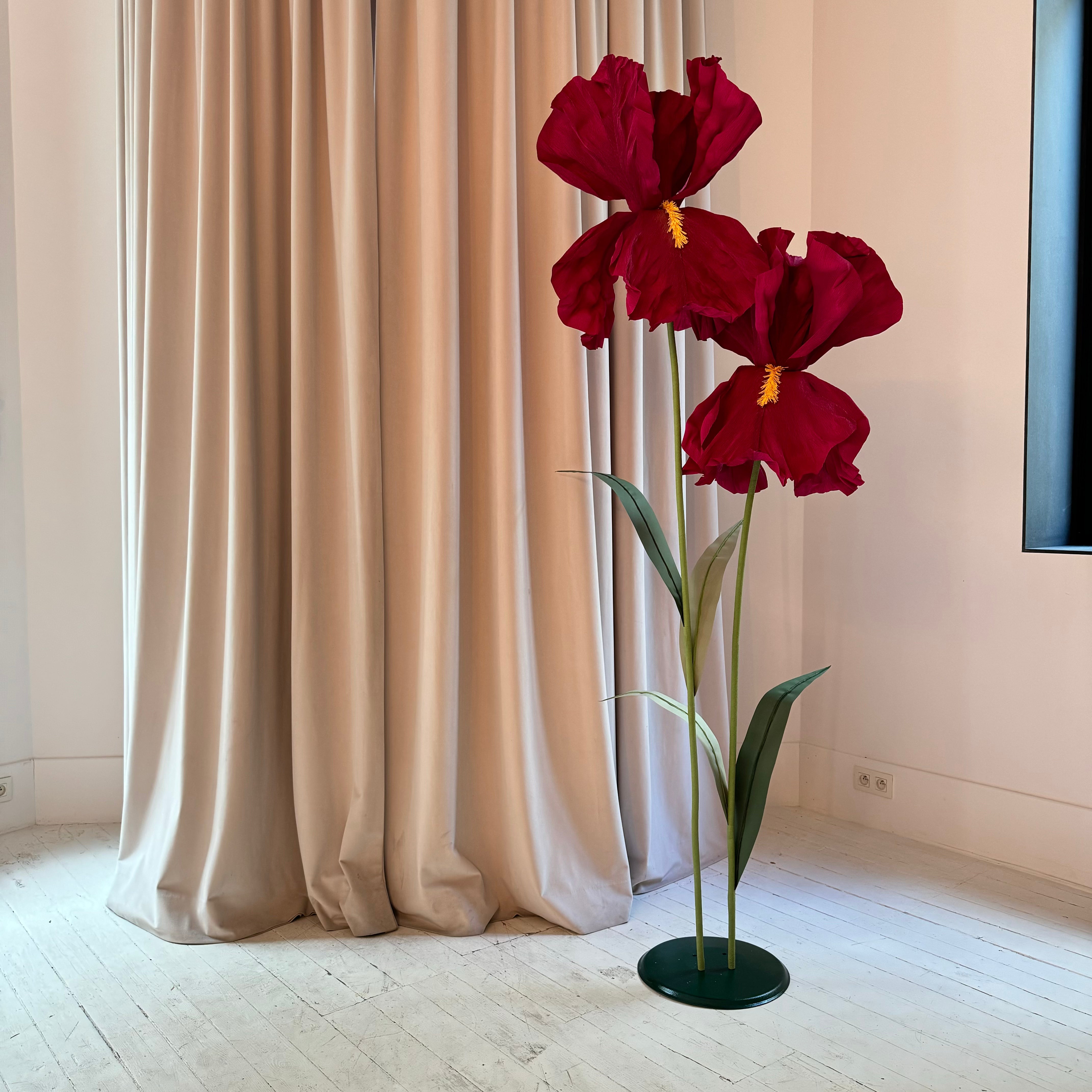 Decorate your space with our wine-colored giant paper iris flowers, perfect for adding a dramatic touch to any decor. These large, handcrafted standing paper flowers are available for purchase, offering an elegant alternative to traditional floral arrangements. Find oversized paper flowers for sale at Evansie, ideal for event decor or unique home accents.