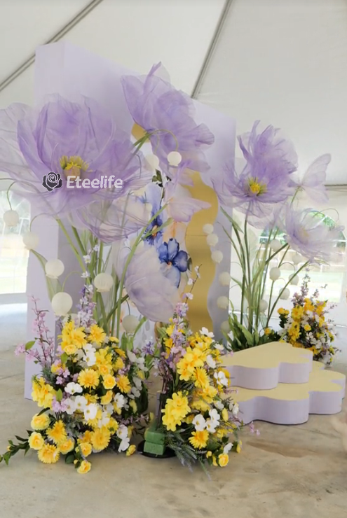 Our stunning giant flower decor has a beautiful shape and excellent workmanship. It can be disassembled at will for easy transportation. One person can complete the assembly. The height of the liftable base can be adjusted arbitrarily. The flower stem of the aluminum-plastic tube can be bent into the desired shape,outdoor waterproof.