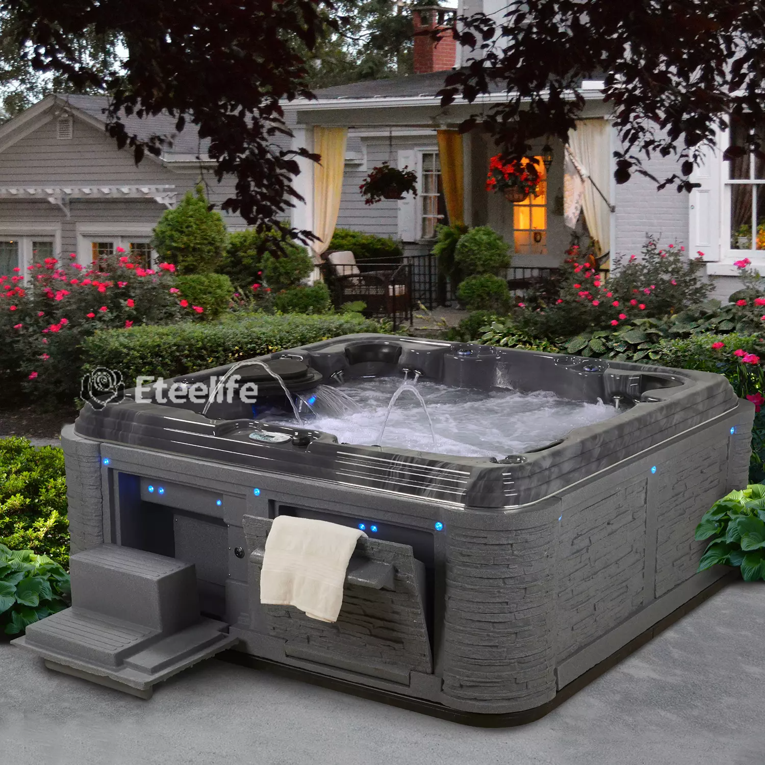 Enjoy the soothing hot water as you are surrounded by bubble jets, with 5 of your closest friends. It has an easy-to-use control panel that activates the 170 high-powered bubble jets that surround the interior of the spa, giving you a beautiful and relaxing massage.