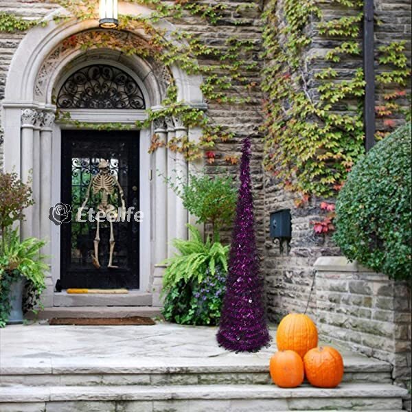 Christmas-halloween tree with lights artificial tinsel twist halloween Christmas tree battery operated for indoor outdoor halloween party decoration 4 9ft purple