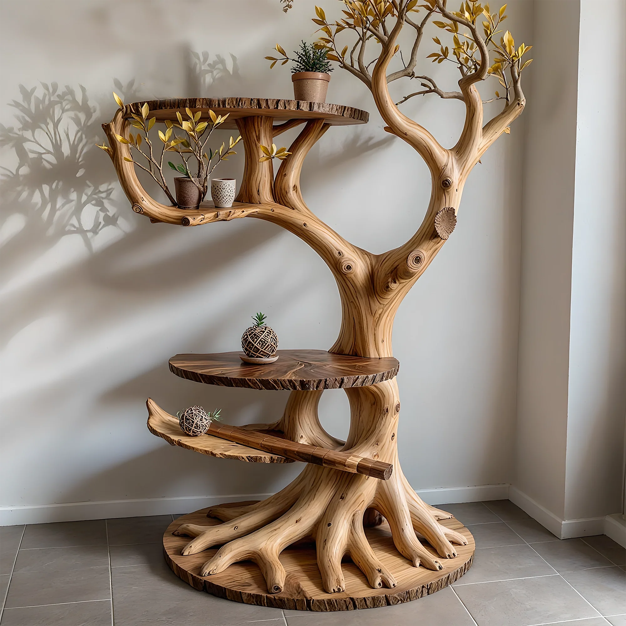 The artistic bonsai shelf is a creative product, suitable for those who love nature and want to bring natural beauty into their living space. With a design simulating a real tree trunk, this product is not only a piece of furniture but also a unique work of art, creating a subtle highlight for any space.