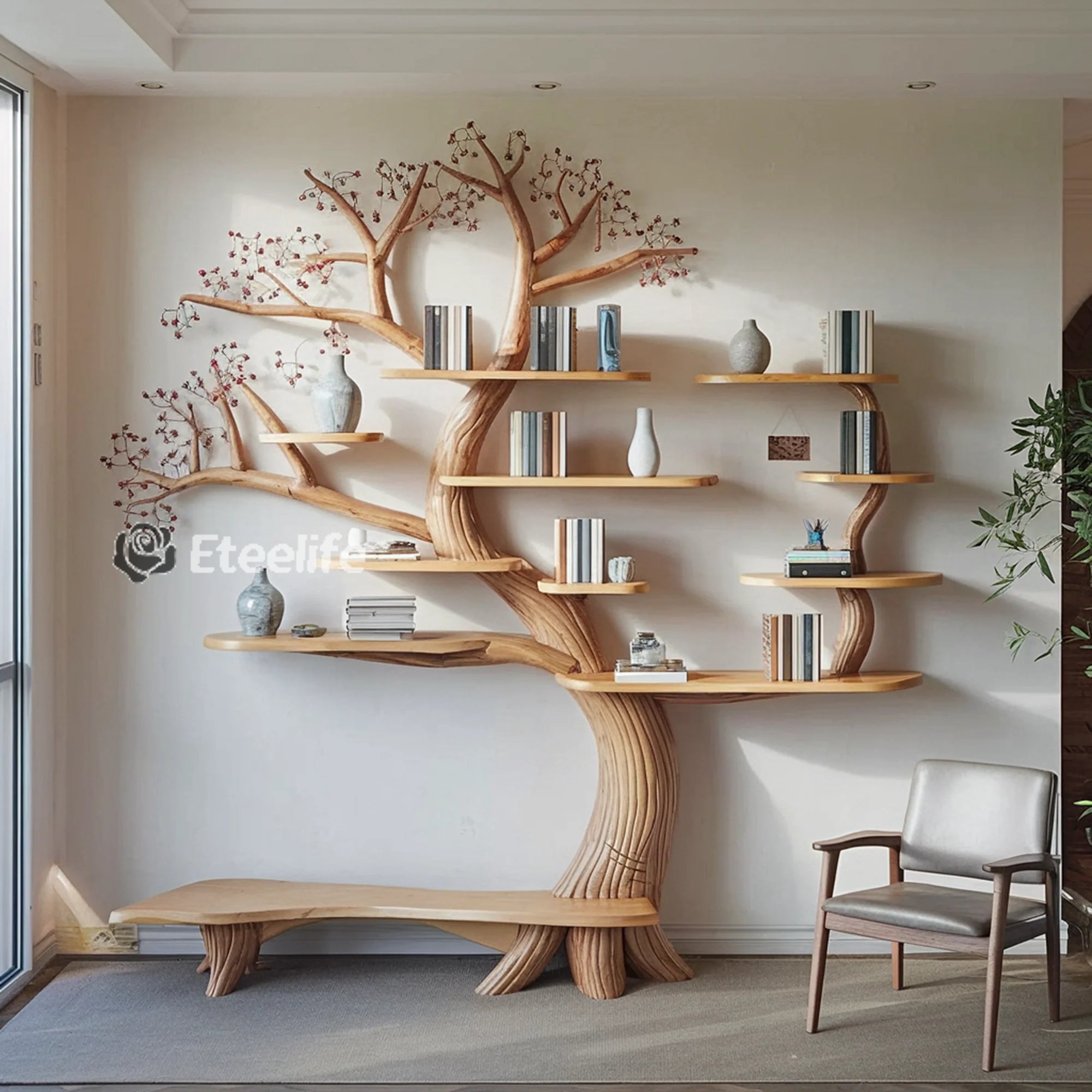 In addition to the function of storing books, the tree-shaped bookshelf is also a place where you can arrange decorations and personal items in a creative and aesthetic way. In particular, it is very suitable for small rooms, helping to optimize space and bring a feeling of relaxation.