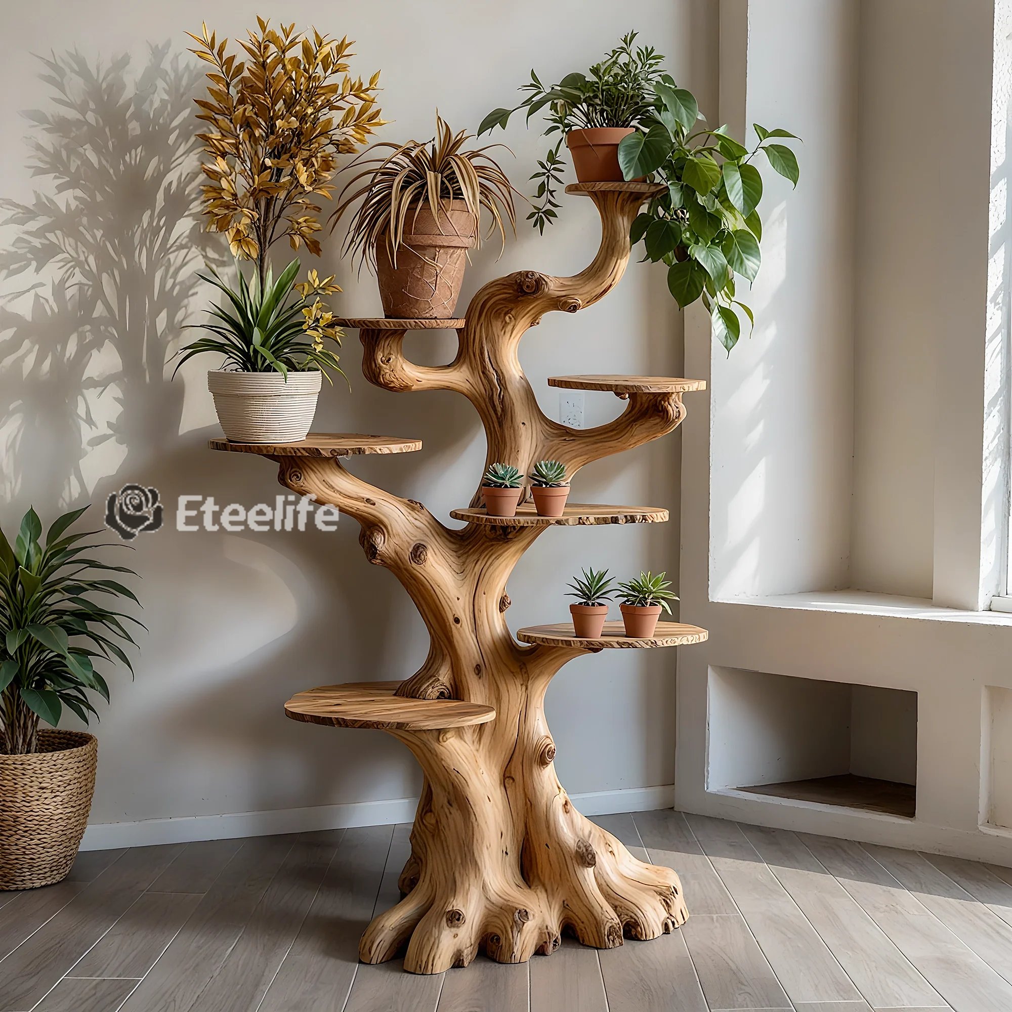 The artistic bonsai shelf is a creative product, suitable for those who love nature and want to bring natural beauty into their living space. With a design simulating a real tree trunk, this product is not only a piece of furniture but also a unique work of art, creating a subtle highlight for any space.
