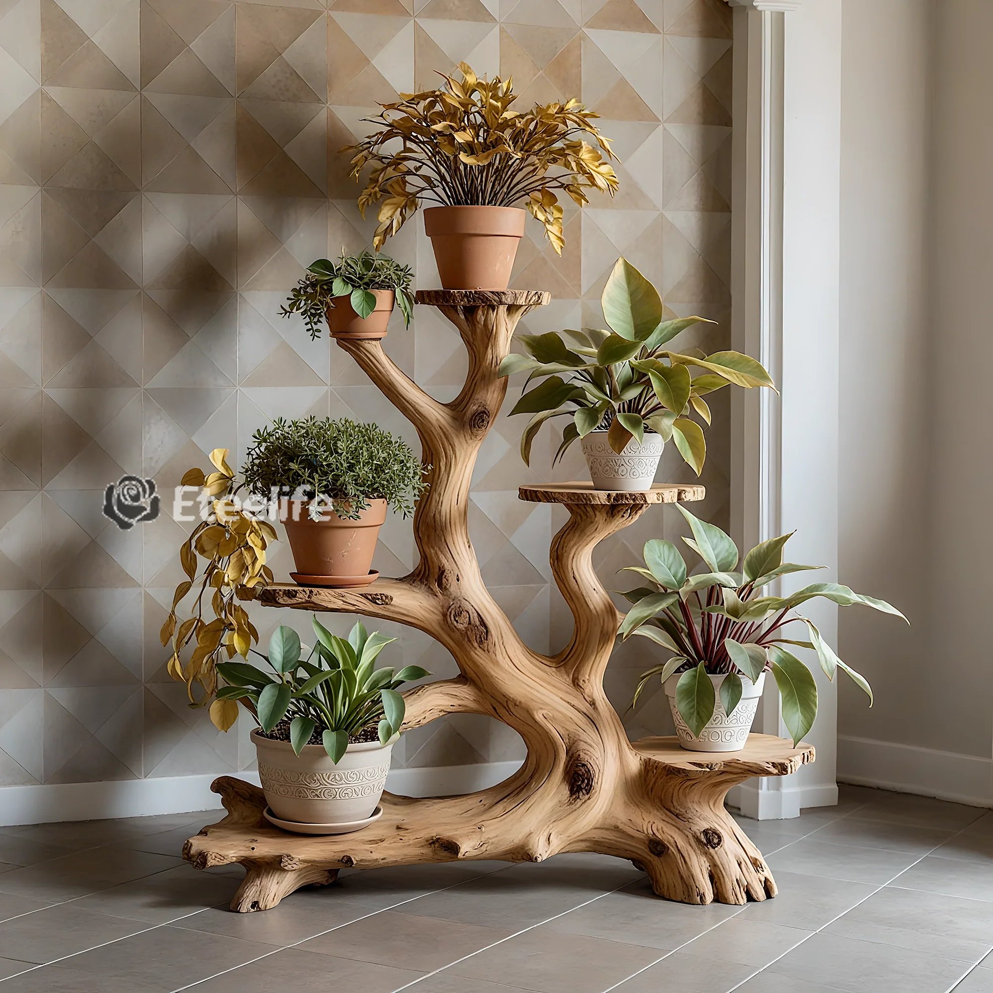 The artistic bonsai shelf is a creative product, suitable for those who love nature and want to bring natural beauty into their living space. With a design simulating a real tree trunk, this product is not only a piece of furniture but also a unique work of art, creating a subtle highlight for any space.