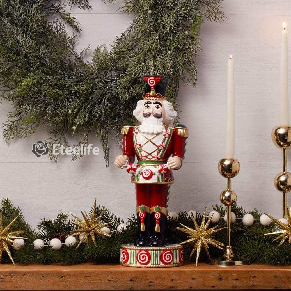 This Fitz and Floyd Sugar Plum Prince Holiday Nutcracker stands at attention in brightly colored revelry, and is a timeless symbol of the holiday season. Donning a wardrobe of Christmas colors and carrying a handful of peppermint candies.