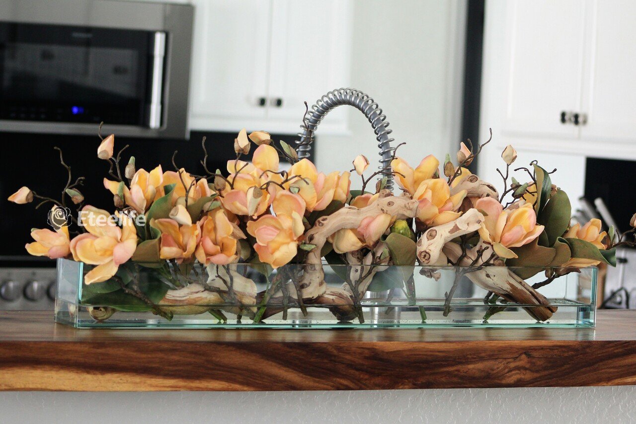 Enjoy beautiful, lifelike magnolia tree branches that won’t fade after spring awakens. Displayed here in a stylish clear glass planter, magnolia flowers are cheerful and elegant in any season. Each hand-placed blossom and leaf is crafted with vivid color and exceptional detail, a tribute to Mother Nature’s artistry. Showcase this lovely faux tree on your dining table or living room tabletop.
