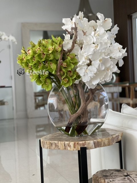 Moon Vase with White Vanda Orchids and Green Cymbidiums
