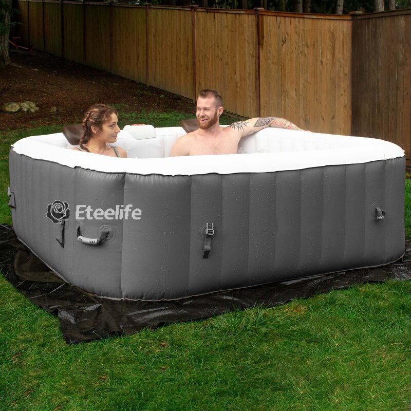 FITS UP TO 6 PEOPLE: Provides relaxation at the touch of a button for up to 6 people with the easy-to-use control panel; The easy to use control panel activates the 170 high powered bubble jets surrounding the interior of the spa for a refreshing massage; Dimensions: (L x H): 85 x 28 inches; Cord length: 25 feet