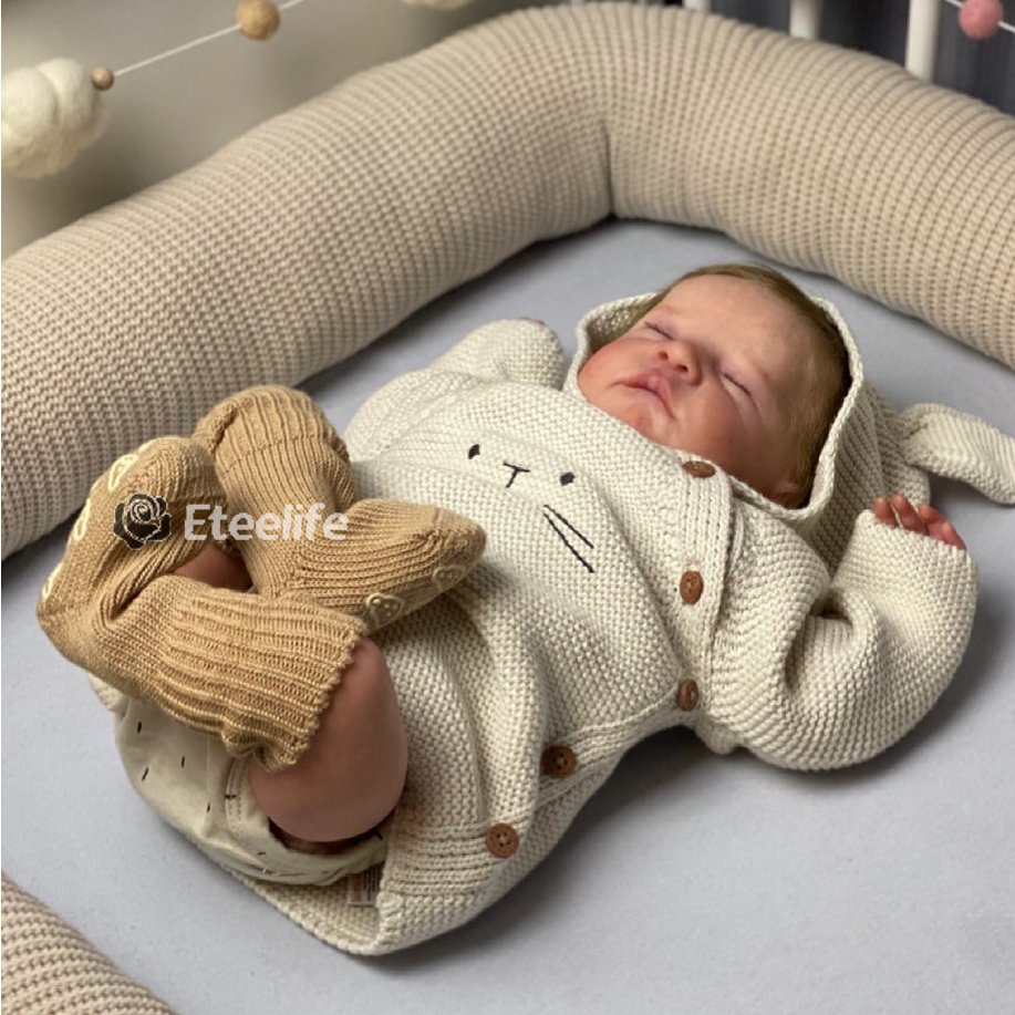 Jax was painted with a kind of professional silicone pigments and she is sealed with a high quality matte finish for a soft and smooth baby-skin feel. She has soft veining, beautiful mottling, fine capillaries, detailed nails, newborn milia, and lifelike shading all over. Her delicate eyebrows are a combinations of mono rooting and fine detailed painting.