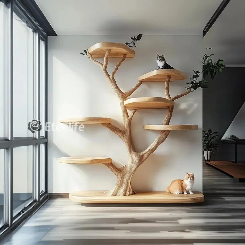 Modern, luxurious design: The shape of the shelf simulates an ancient tree, with wooden branches extending into convenient shelves to place potted plants, decorations, or personal items. Create a highlight for the living room, office or relaxation corner