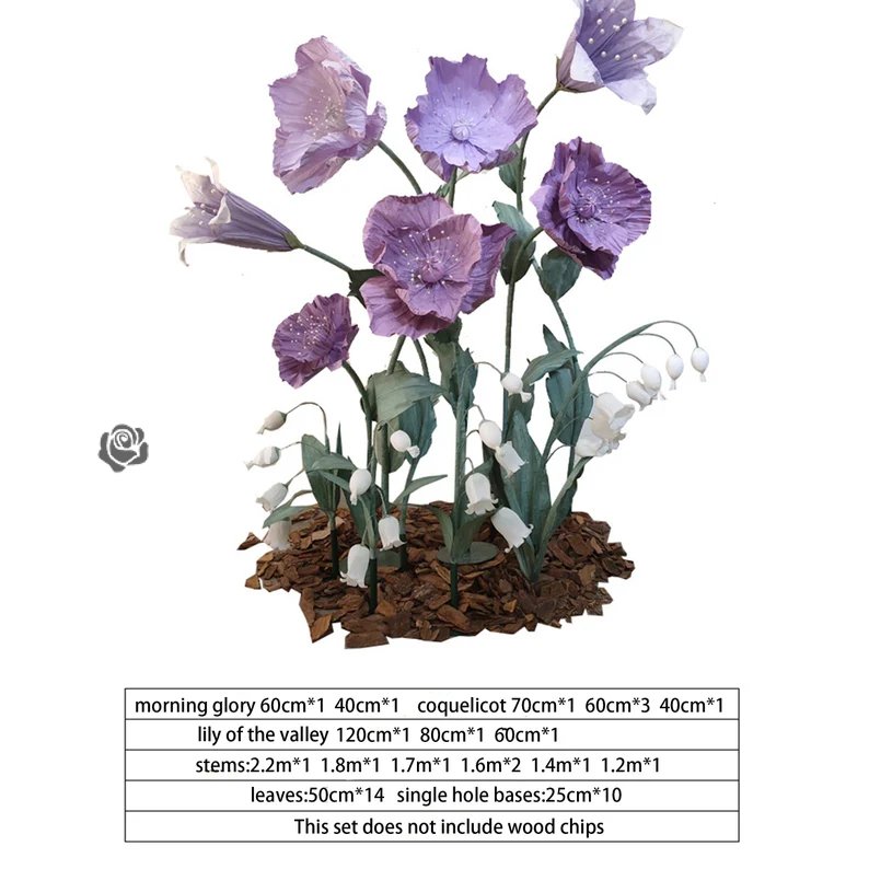 Our free-standing giant paper flower set is made of iron and special fiber paper, outdoor waterproof, vivid details, the iron base is not easy to fall over, the pole can be bent for easy landscaping, perfect for weddings/parties/stage decorations/window sales/photography props and any other occasion.