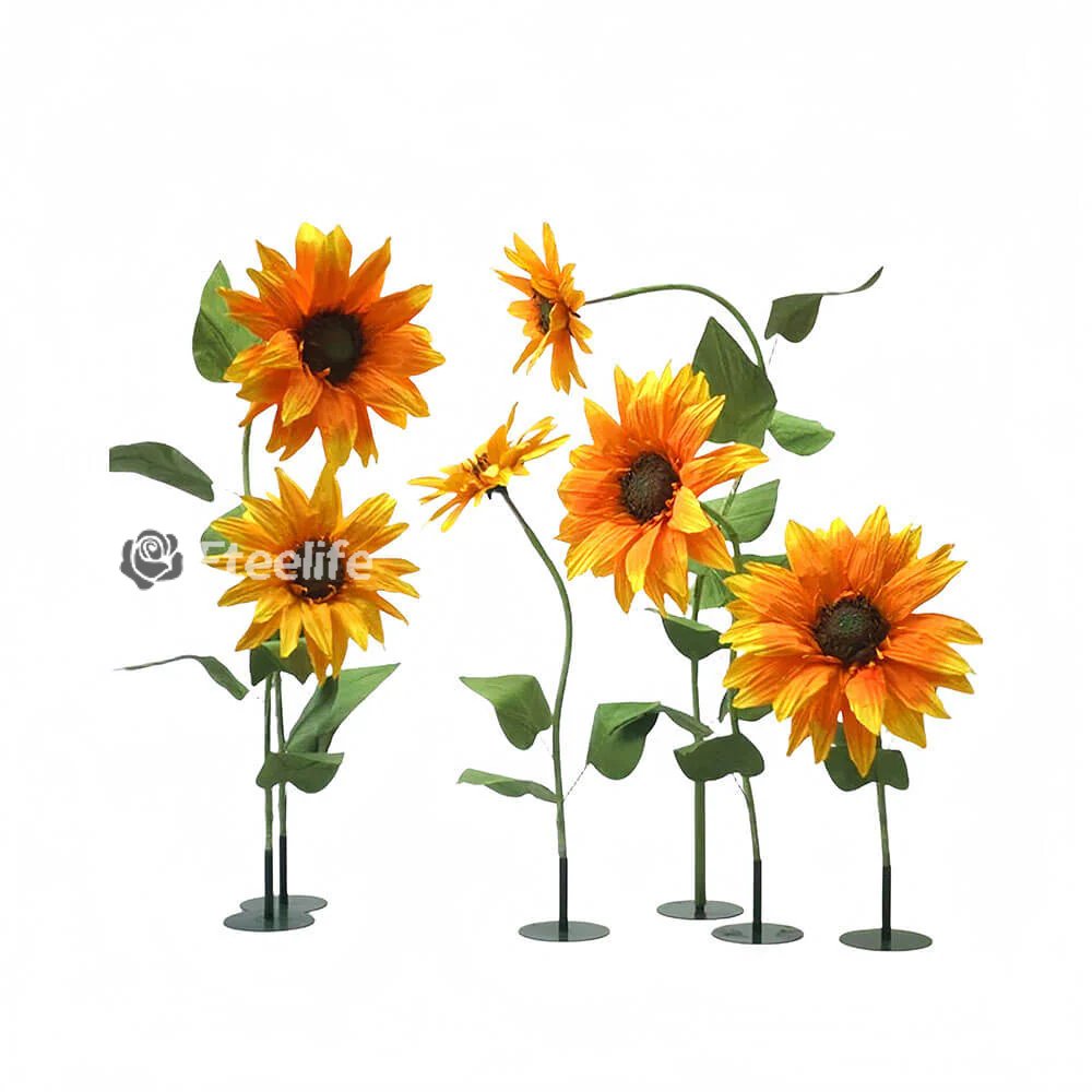 - The sunflower size are 20/25/28 inch in diameter; - 6 pcs metal bases and 8 pcs stems with leaves.