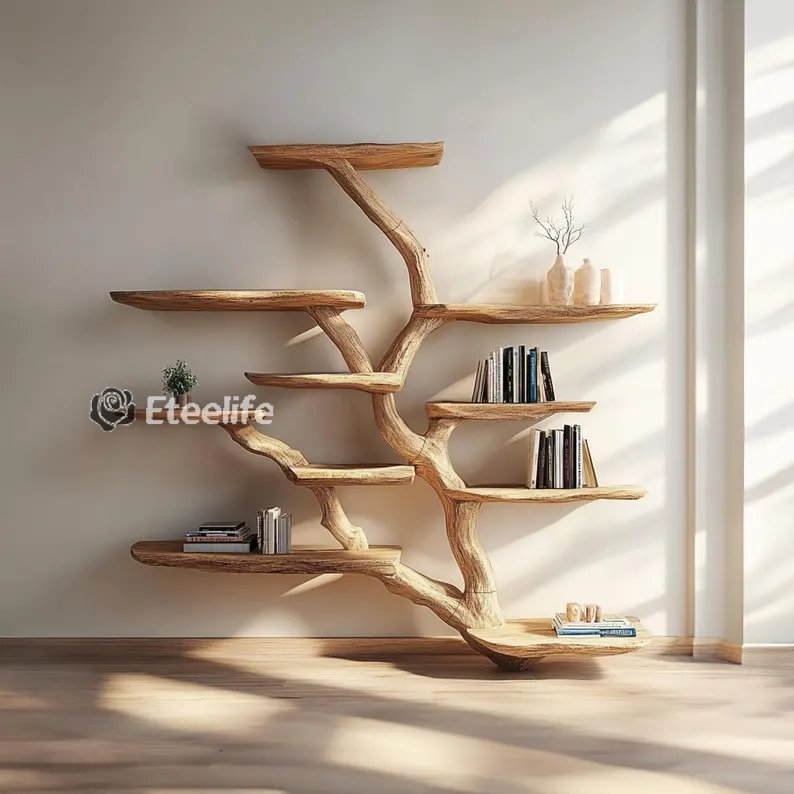Modern, luxurious design: The shape of the shelf simulates an ancient tree, with wooden branches extending into convenient shelves to place potted plants, decorations, or personal items. Create a highlight for the living room, office or relaxation corner