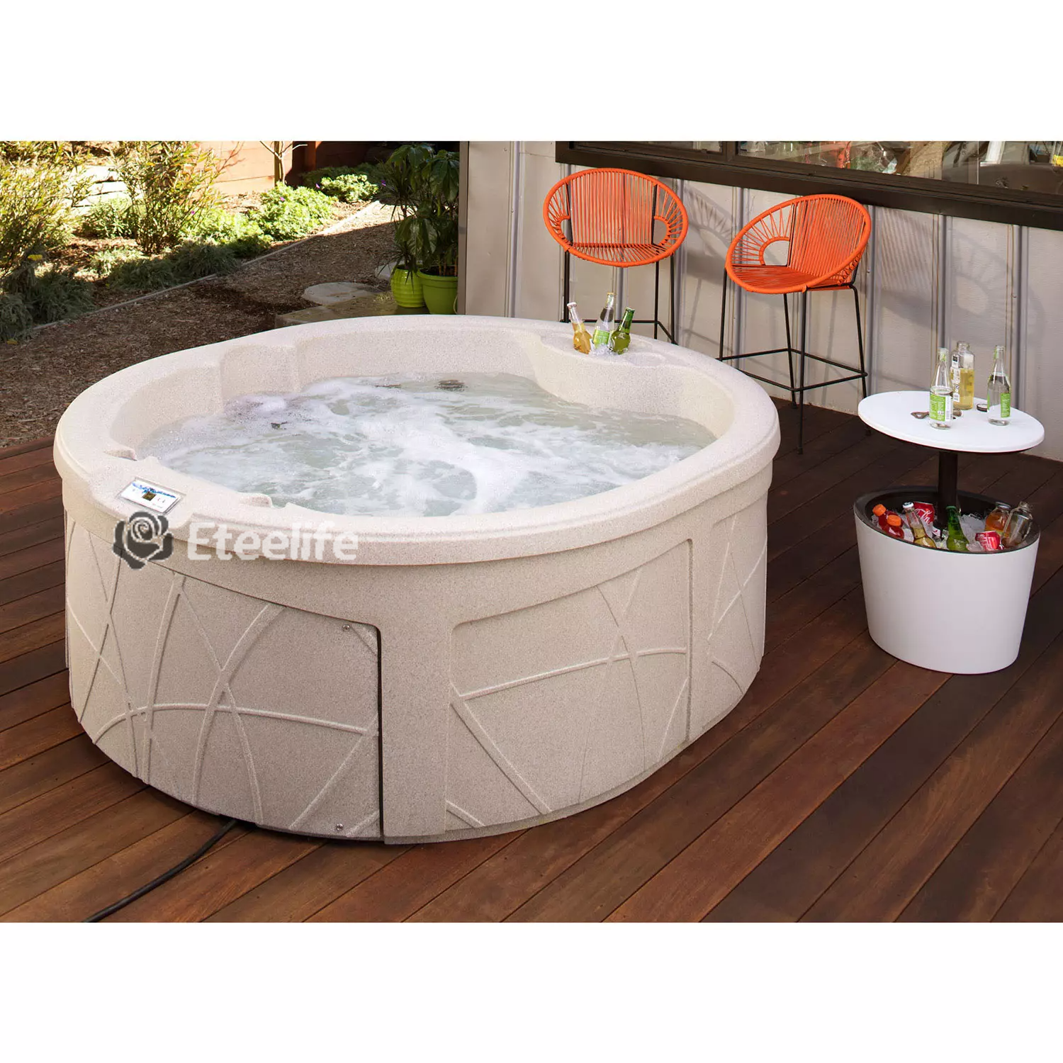 Enjoy the soothing hot water as you are surrounded by bubble jets, with 5 of your closest friends. It has an easy-to-use control panel that activates the 170 high-powered bubble jets that surround the interior of the spa, giving you a beautiful and relaxing massage.