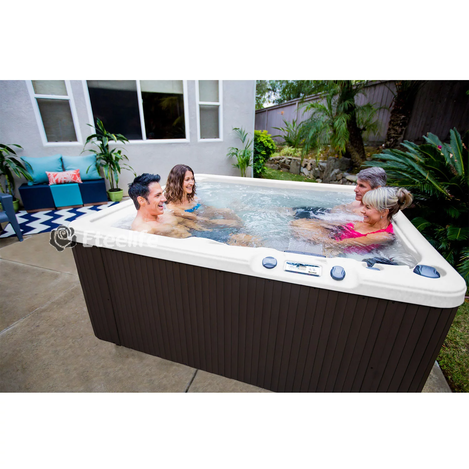 Enjoy the soothing hot water as you are surrounded by bubble jets, with 5 of your closest friends. It has an easy-to-use control panel that activates the 170 high-powered bubble jets that surround the interior of the spa, giving you a beautiful and relaxing massage.