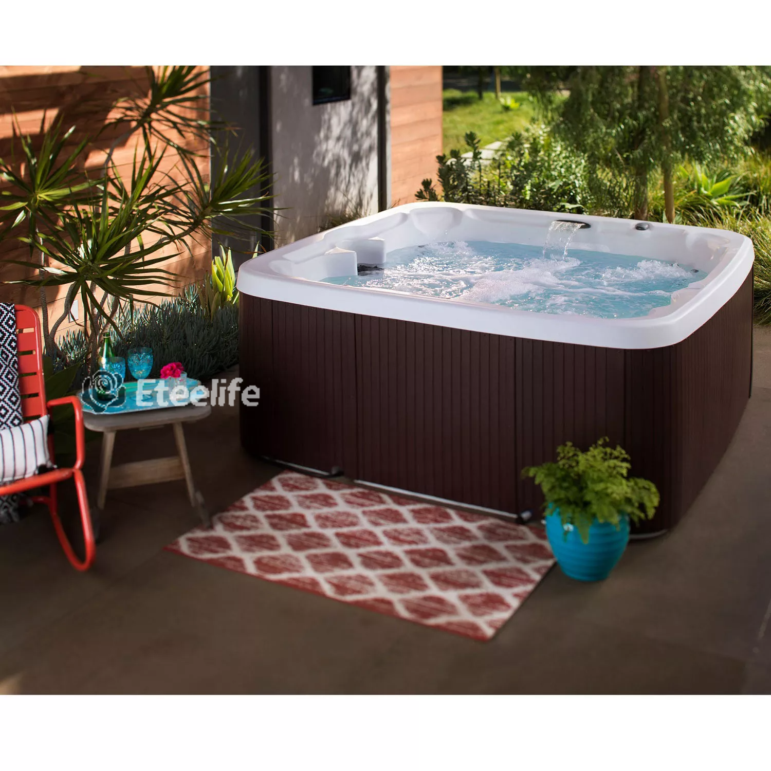 Enjoy the soothing hot water as you are surrounded by bubble jets, with 5 of your closest friends. It has an easy-to-use control panel that activates the 170 high-powered bubble jets that surround the interior of the spa, giving you a beautiful and relaxing massage.