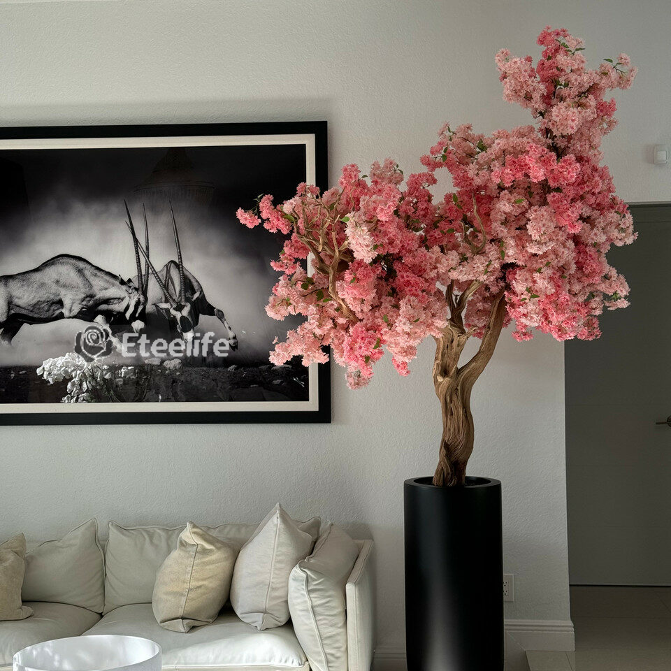 Matte Black St. Tropez Planter with Custom Made Pink Cherry Blossom Tree