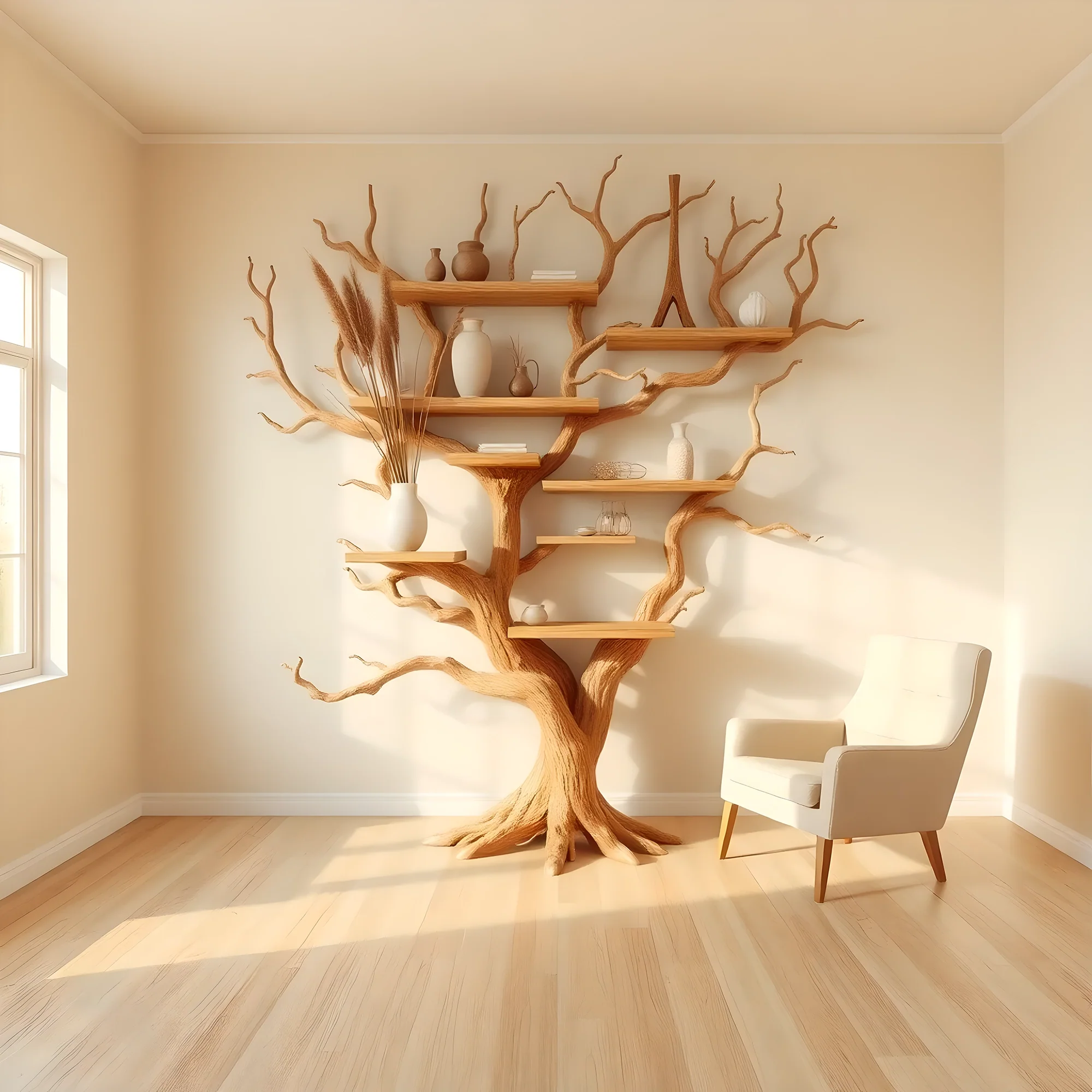 Tree-shaped bookshelves often simulate the structure of a tree, with branches extending outward to hold books and decorative items. They can be designed in a variety of styles, from minimalist forms to more complex and artistic forms.