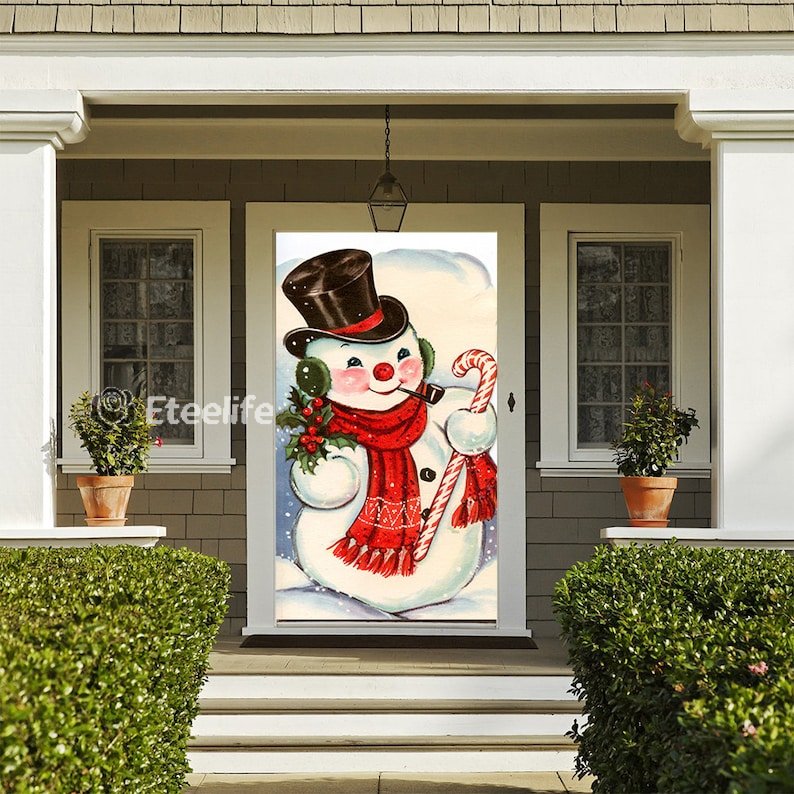 Old Fashioned Snowman Door Cover - Christmas Door Covers - Snowman Decorations - Front Door Decor - Holiday Door Covers
